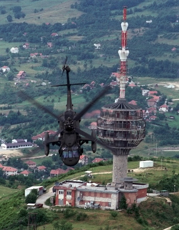 Flying by the heavily shelled and destroyed Hum communications tower in the capital city of Sarajevo, Bosnia. Beautiful country, but I’m not exaggerating when I say that every single house and structure had bullet holes…even in the mountains.