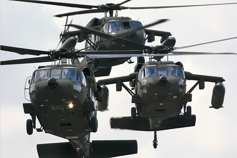 UH-60 Blackhawks. Lead and two “chase birds” landing to pick up the NATO Supreme Allied Commander at NATO Headquarters, Brussels, Belgium.