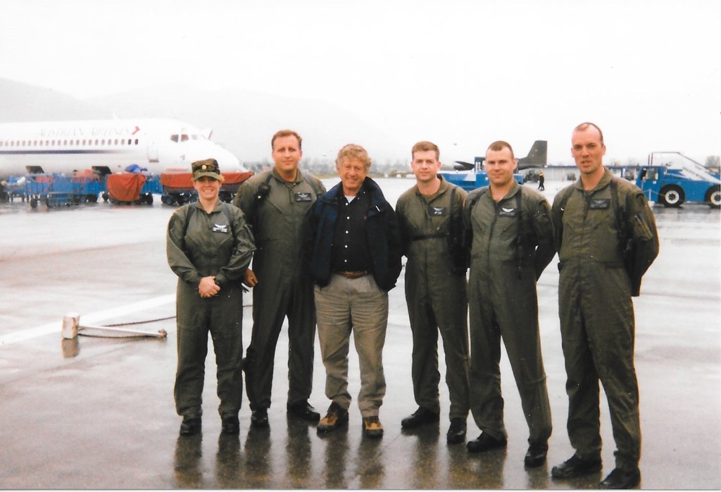Journalist Ted Koppel, after returning from an arial tour around war-torn Bosnia and Herzegovina (Former republic of Yugoslavia). Doesn’t look like we scared him too much.